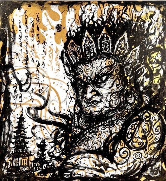 李延的跨界实践始终承载着传播东方智慧的使命。在《万物归心,圆满之路》展览中,他与加措以“佛魔二元对立”为切入点,通过其鬼神意象对话加措的“圆满”符号,探讨欲望与修行的当代意义,让观众在艺术场域中自行思考“修行”的本质,实践了“寓教于乐”的传统教化理念。