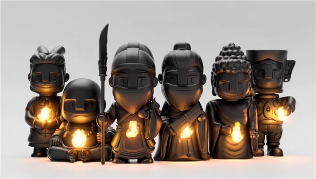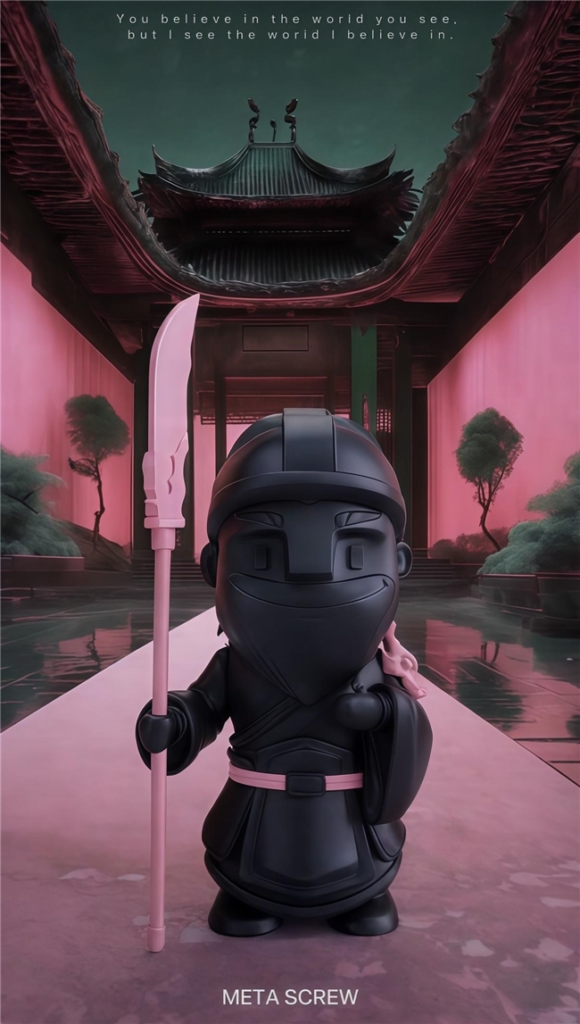 名圣系列则展现了对历史人物的智慧解构。以关羽形象为例,刻意模糊体态等特征,却强化面部、青龙偃月刀的象征意义,这种“舍形取神”的手法,深得中国写意艺术“重神轻形”的精髓,为观众预留了解读与想象的空间,体现了“言有尽而意无穷”的传统美学理想。