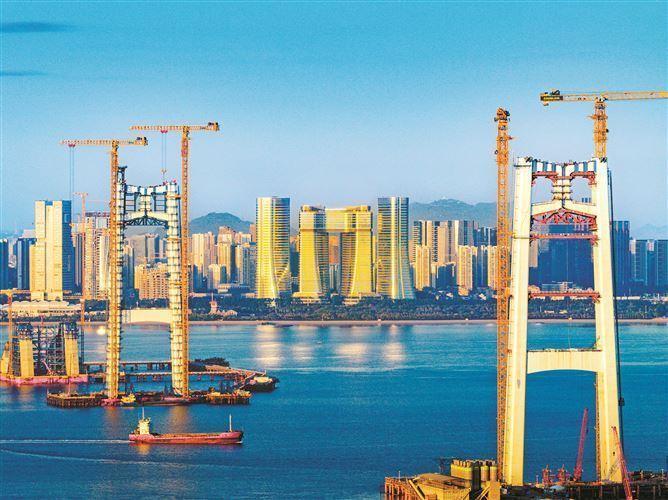 建设中的厦金大桥厦门段与两岸金融中心核心建筑群成就厦门新的天际线。