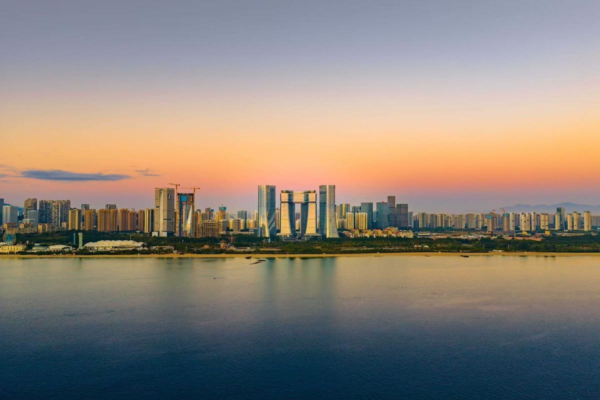 新年金色晨光中的两岸金融中心核心建筑群和建设中的厦金大桥厦门段,共同为厦门呈现了新的城市天际线,象征着厦门链接两岸、拥抱世界、面向未来的城市新气象。