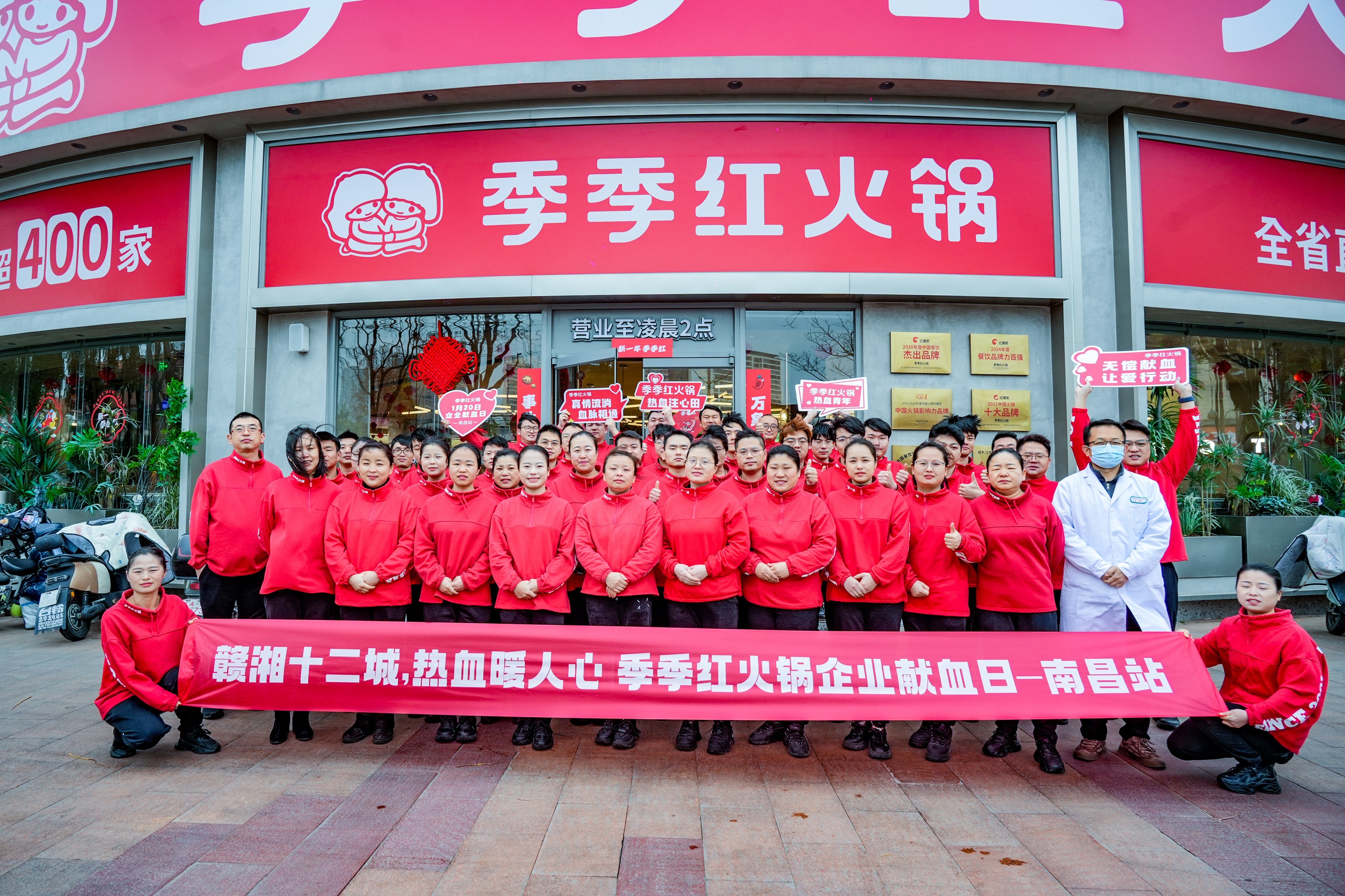 据悉,本次献血活动在以往的基础上进一步扩大了覆盖范围,不仅继续在江西全省11个地市设有爱心献血点,首次新增了湖南长沙,12个城市共计设置了18个献血点。1月19日-20日,季季红火锅超460名员工踊跃登记报名,献血总量为12.3万毫升。从2020年自发组织献血以来,七年时间里,季季红员工献血累计超63万毫升。这一系列行动,生动诠释了“小火锅”里蕴藏的“大情怀”,彰显了季季红人朴实而深厚的社会责任感,为无数需要帮助的生命送去了希望与力量。